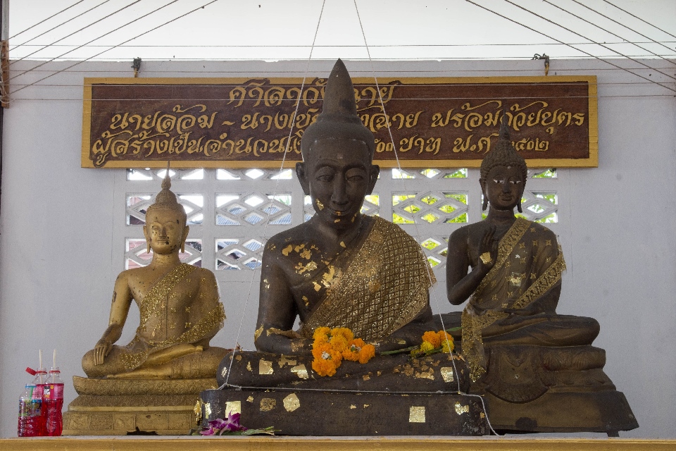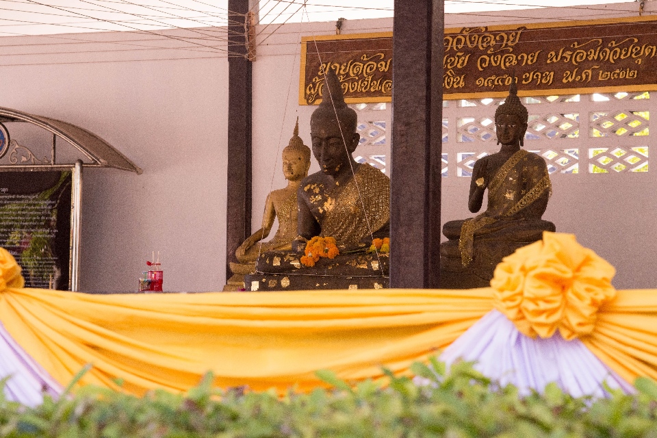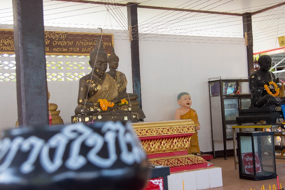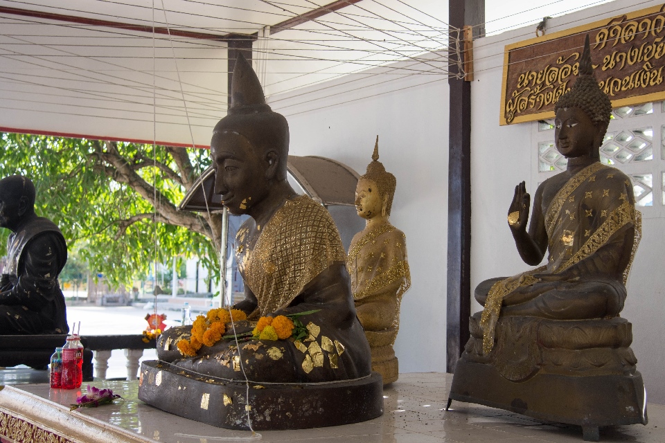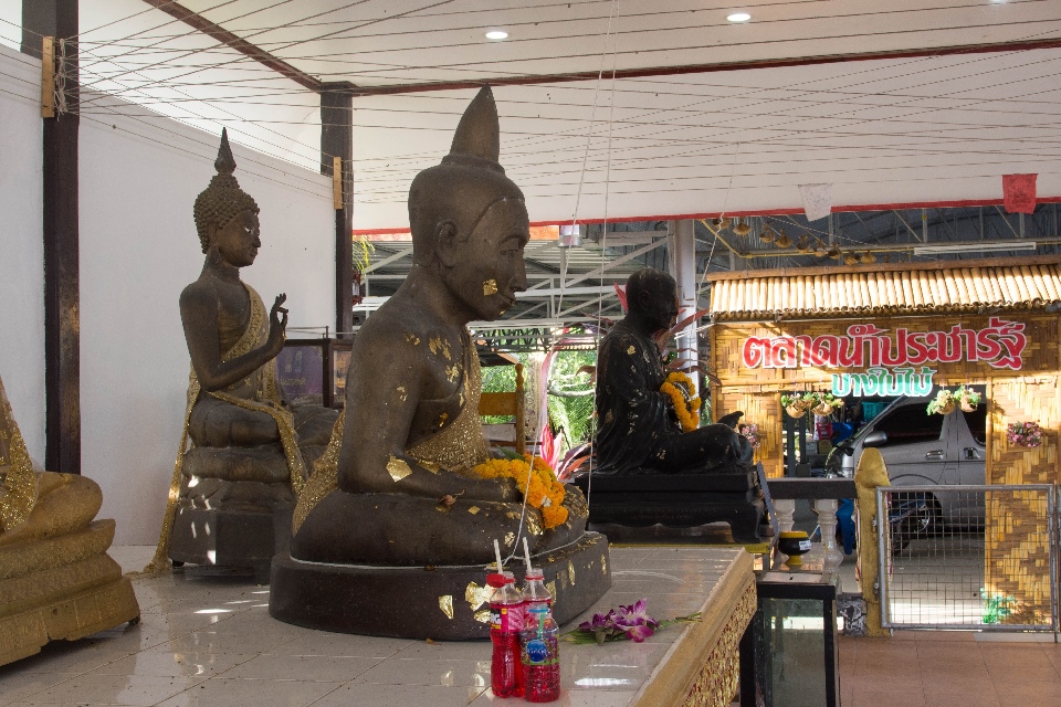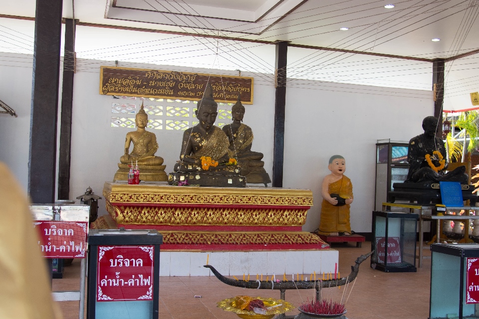 แวะกราบสักการะหลวงพ่อข้าวสุกที่มีความศักดิ์สิทธิ์ยิ่ง ซึ่งประดิษฐานอยู่ภายในศาลาวัดบางใบไม้ เป็นพระพุทธรูปซึ่งสร้างขึ้นจากการนำข้าวก้นบาตรมาเป็นมวลสารในการปั้น เมื่อผ่านกาลเวลา ทำให้องค์หลวงพ่อเริ่มเอียงมาทางด้านหน้า ในปี 2541 จึงมีการนำทองแดงมาหุ้มองค์เดิมไว้จนถึงปัจจุบัน