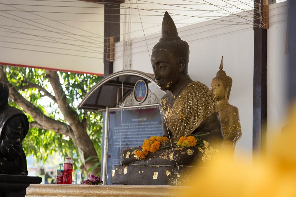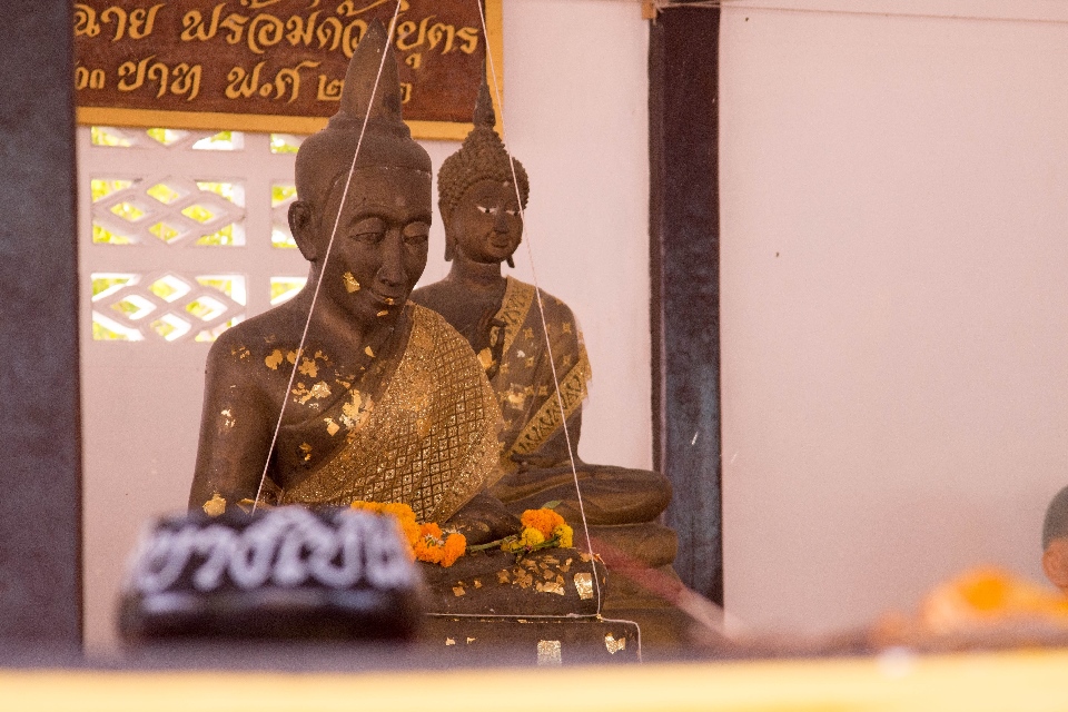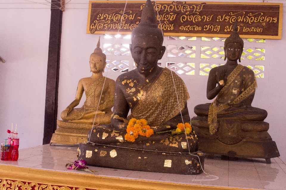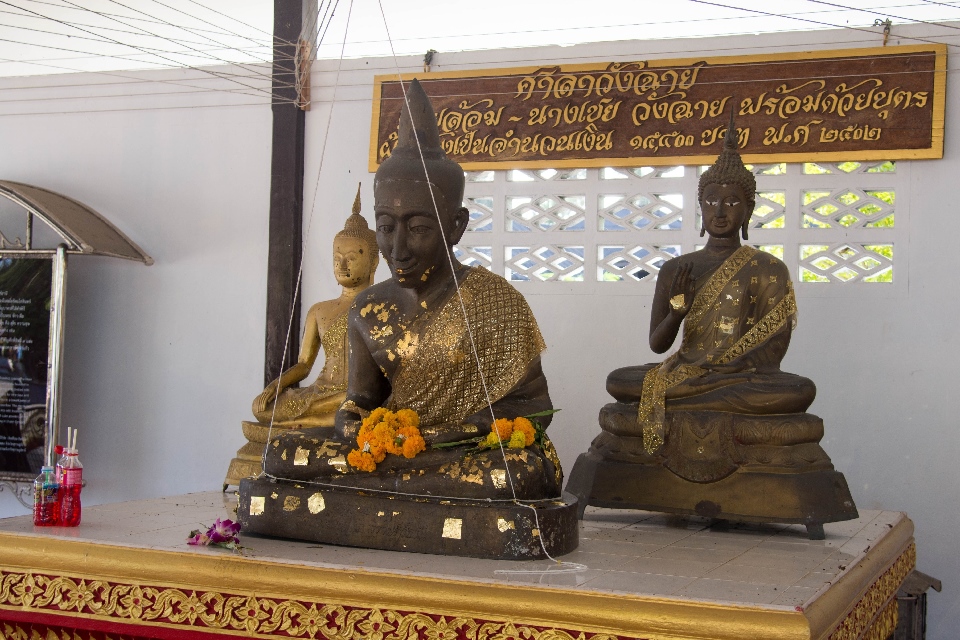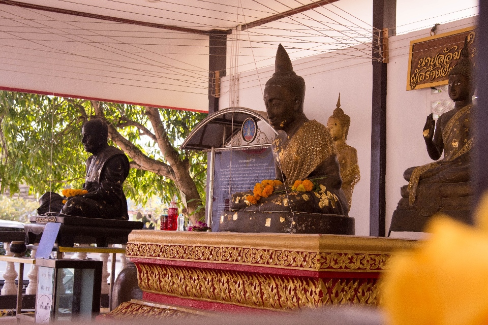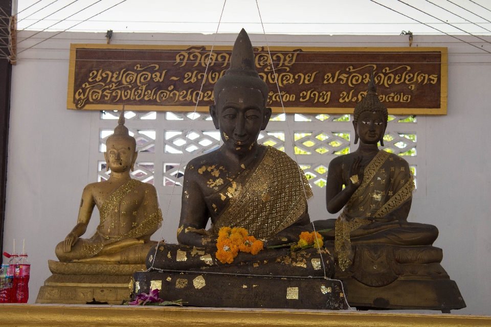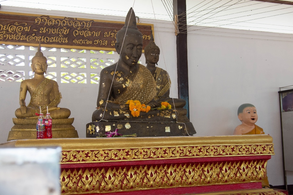แวะกราบสักการะหลวงพ่อข้าวสุกที่มีความศักดิ์สิทธิ์ยิ่ง ซึ่งประดิษฐานอยู่ภายในศาลาวัดบางใบไม้ เป็นพระพุทธรูปซึ่งสร้างขึ้นจากการนำข้าวก้นบาตรมาเป็นมวลสารในการปั้น เมื่อผ่านกาลเวลา ทำให้องค์หลวงพ่อเริ่มเอียงมาทางด้านหน้า ในปี 2541 จึงมีการนำทองแดงมาหุ้มองค์เดิมไว้จนถึงปัจจุบัน